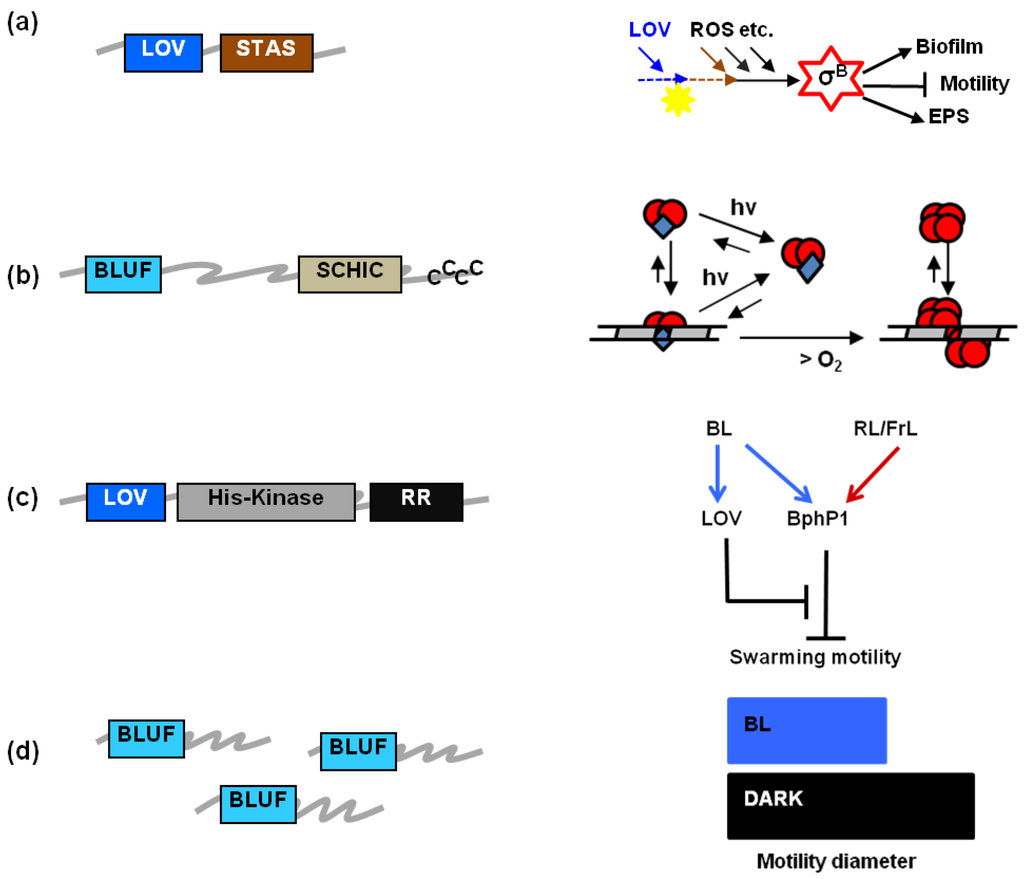 | P. syringae pv. syringae | PssLOV | Motility (swarming) d [4] |