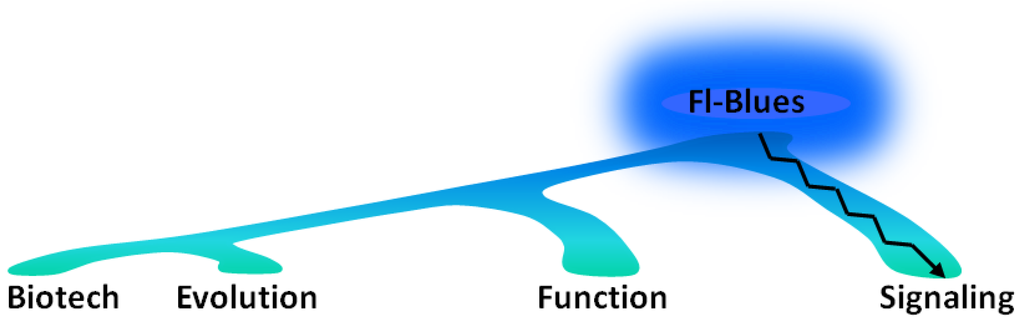- Drepper, T.; Gensch, T.; Pohl, M. Advanced in vivo applications of blue light photoreceptors as alternative fluorescent proteins. Photochem. Photobiol. Sci. 2013, 12, 1125–1134. [Google Scholar] [CrossRef]