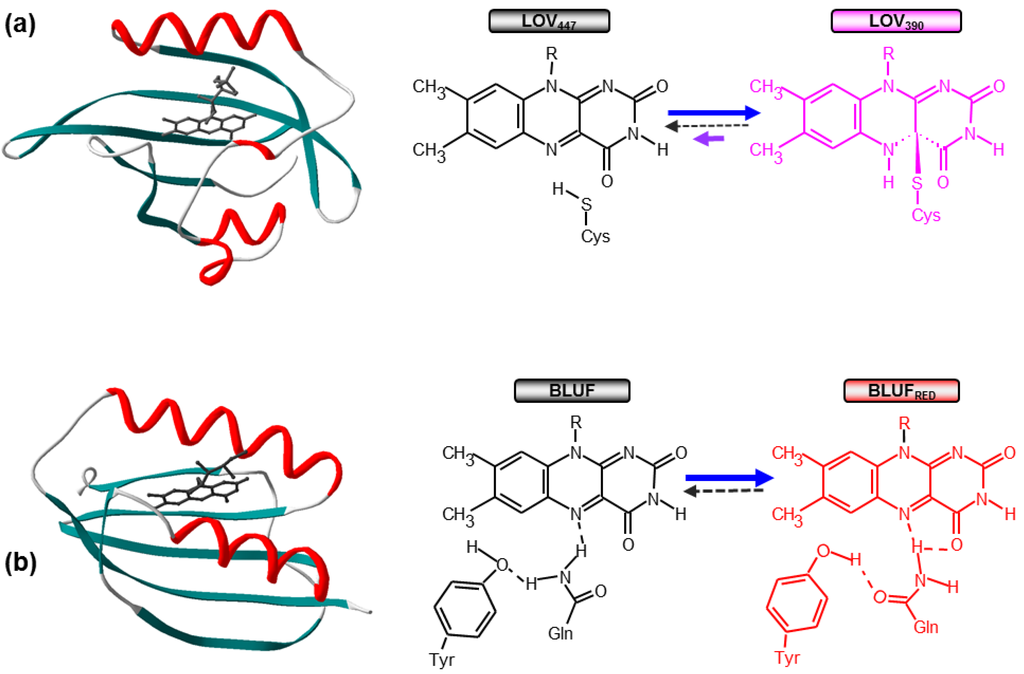 - Losi, A.; Gartner, W. Old chromophores, new photoactivation paradigms, trendy applications: Flavins in blue light-sensing photoreceptors. Photochem. Photobiol. 2011, 87, 491–510. [Google Scholar] [CrossRef]