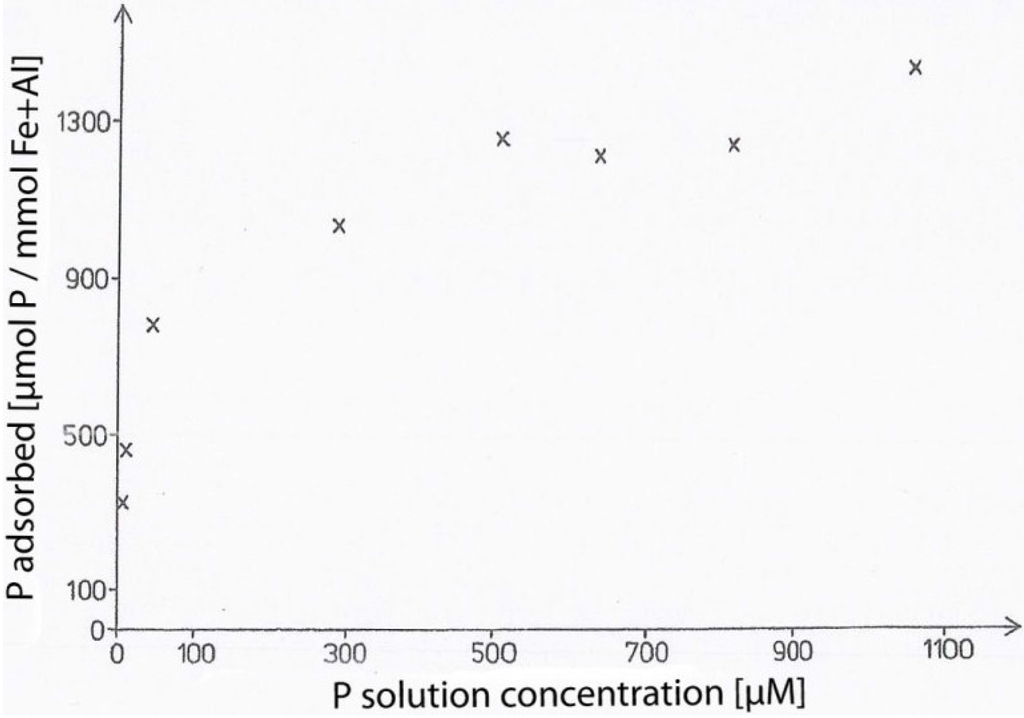 Gerke [27] (p. 280) measured the adsorption of phytate to humic-Fe(Al) complexes in 0.1 M NaCl at pH 6.2 (Figure 1).