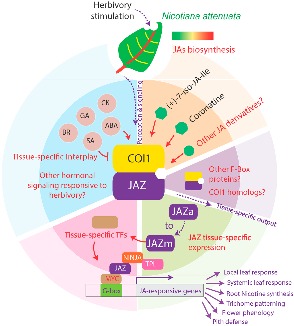 Li D, Baldwin IT, Gaquerel E. Beyond the Canon: Within-Plant and Population-Level Heterogeneity in Jasmonate Signaling Engaged by Plant-Insect Interactions. Plants. 2016; 5(1):14. https://doi.org/10.3390/plants5010014