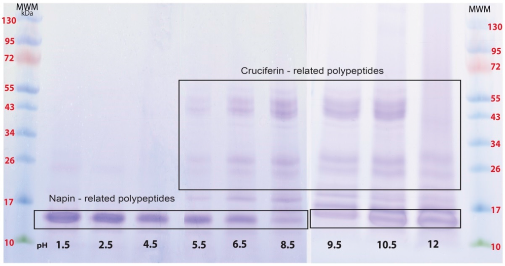 - Schmidt, I.; Renard, D.; Rondeau, D.; Richomme, P.; Popineau, Y.; Axelos, M.A. Detailed physicochemical characterization of the 2S storage protein from rape (Brassica napus L.). J. Agric. Food Chem. 2004, 52, 5995–6001. [Google Scholar] [CrossRef] [PubMed]
