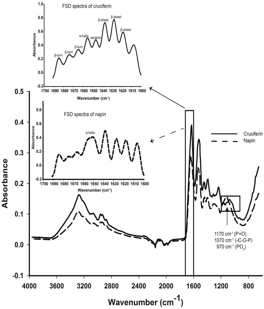 2.4. Secondary Structure Features of Cruciferin and Napin and Their Changes Due to Medium pH