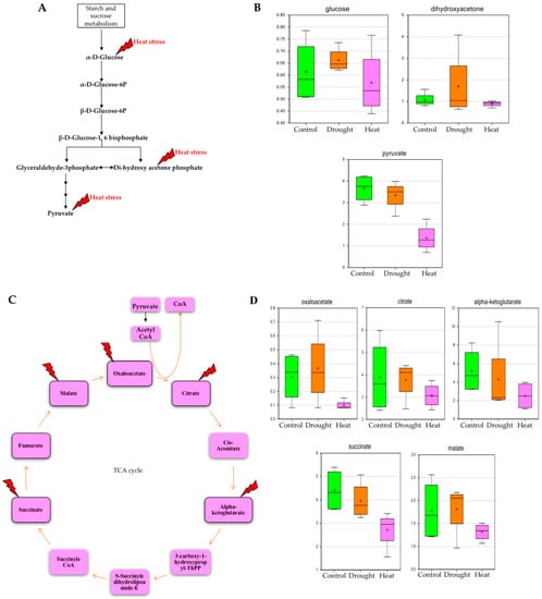 2.2. Effect of Drought and Heat Stress on Carbohydrate Metabolism