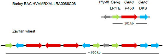 2.3. A Much Larger Cer-cqu Gene Cluster Occurs in Wheat