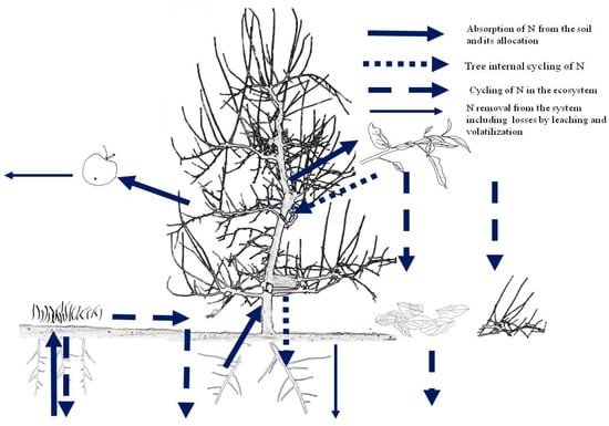 Nitrogen dynamics in a fruit tree ecosystem (Source: []).