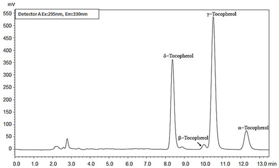 RP-HPLC/FLD chromatogram of tocopherols from Malus “Ola” oil separated using a Luna PFP column.