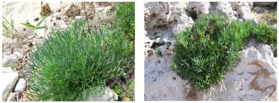 Plants of sea fennel on a sandy beach (left) and maritime rocks (right). Adapted from Renna et al. [].