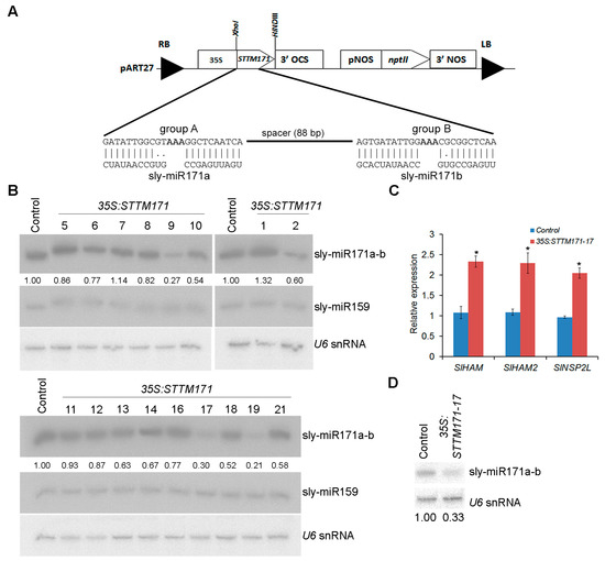 2.2. Knockdown of Sly-miR171 Activity Using the STTM Approach