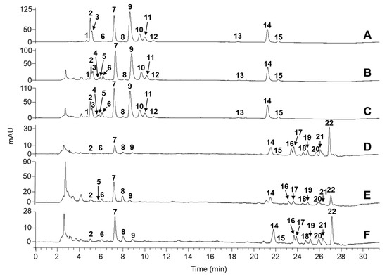 3.7. HPLC–MSn Analysis