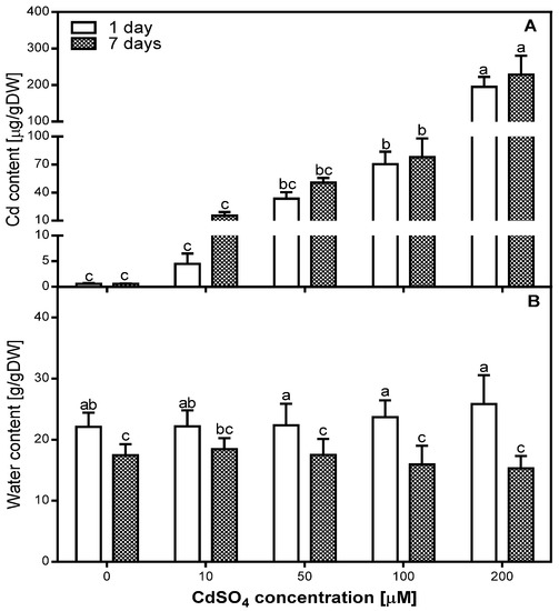 2.2. Effects of Cd on the Water Content in Pea Roots