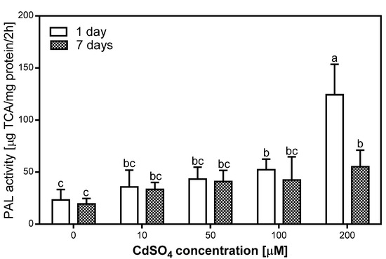 2.3. Effects of Cd on PAL Activity in Pea Roots