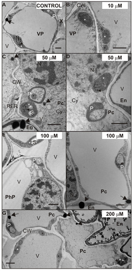 - Gzyl, J.; Przymusiński, R.; Gwóźdź, E.A. Ultrastructure analysis of cadmium-tolerant and -sensitive cell lines of cucumber (Cucumis sativus L.). Plant Cell Tissue Organ Cult. 2009, 99, 227–232. [Google Scholar] [CrossRef]