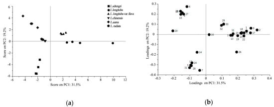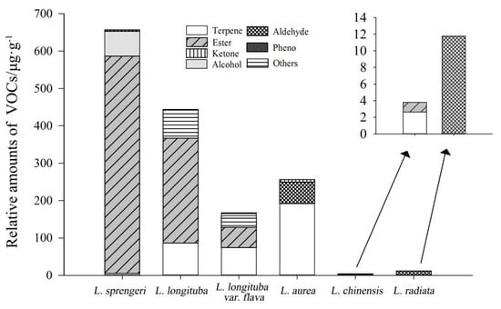 Chicago/Turabian StyleShi, Tingting, Yuanzheng Yue, Man Shi, Min Chen, Xiulian Yang, and Lianggui Wang. 2019. "Exploration of Floral Volatile Organic Compounds in Six Typical Lycoris taxa by GC-MS" Plants 8, no. 10: 422. https://doi.org/10.3390/plants8100422
