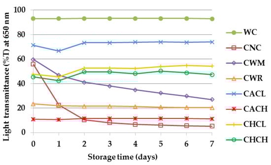 | Sample | Light transmittance (%T) at 650 nm | Δ%T | |