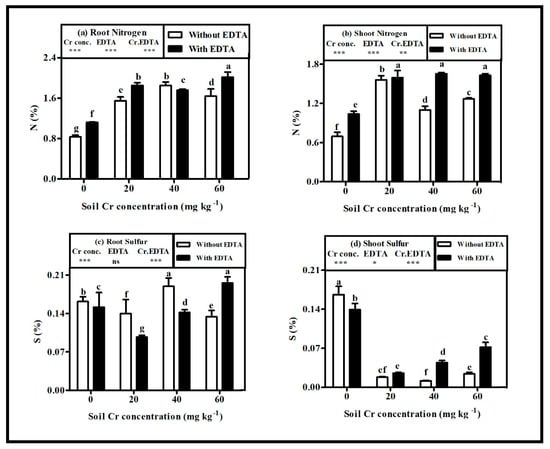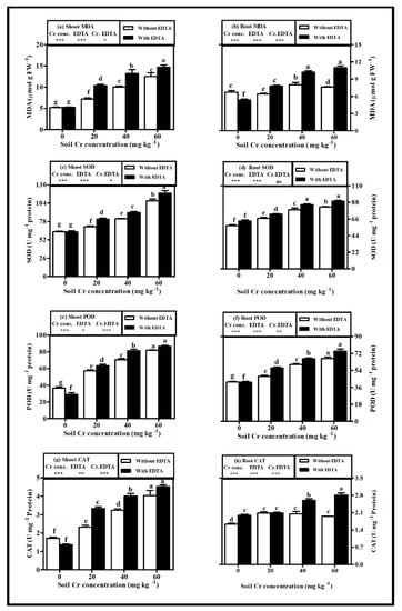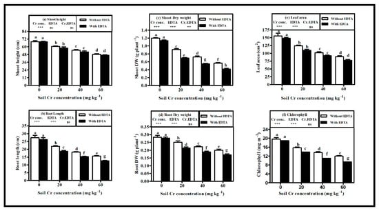 | Cr(VI) conc. × EDTA | *** | *** | *** | ns | *** | *** | |