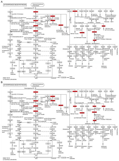 3.6. Specific Pathway of Diterpenoid Biosynthesis Analysis