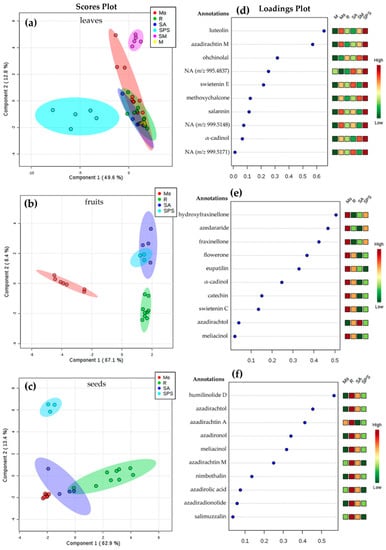 2.2. Chemical Variability through Metabolic Profiling of Crude Extracts of A. indica