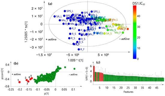 2.4. Validation of the OPLS Model by Direct Identification of Bioactives after High Performance Liquid Chromatography (HPLC)-Based Microfractionation