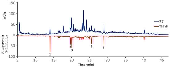 3.7. Purification and Identification of Most-Active Compounds from Extract 37 by Semipreparative-Scale HPLC