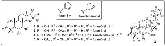 - Suresh, G.; Narasimhan, N.S.; Palani, N. Structure of nimonol from fresh whole green leaves of Azadirachta indica. Phytochemistry 1997, 45, 807–810. [Google Scholar] [CrossRef]