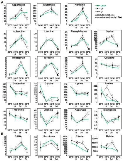 2.5. Minor Changes in the Amino and Organic Acid Contents during Temperature Stress