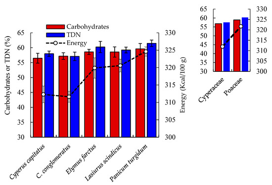 - Pamo, E.T.; Boukila, B.; Fonteh, F.A.; Tendonkeng, F.; Kana, J.R.; Nanda, A.S. Nutritive value of some grasses and leguminous tree leaves of the Central region of Africa. Anim. Feed Sci. Technol. 2007, 135, 273–282. [Google Scholar] [CrossRef]