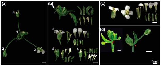 - Pidkowich, M.S.; Klenz, J.E.; Haughn, G.W. The making of a flower: Control of floral meristem identity in Arabidopsis. Trends Plant Sci. 1999, 4, 64–70. [Google Scholar] [CrossRef]