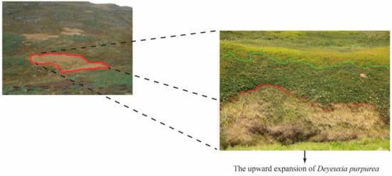 Upward expansion of Deyeuxia purpurea in the alpine tundra of the Changbai Mountains.