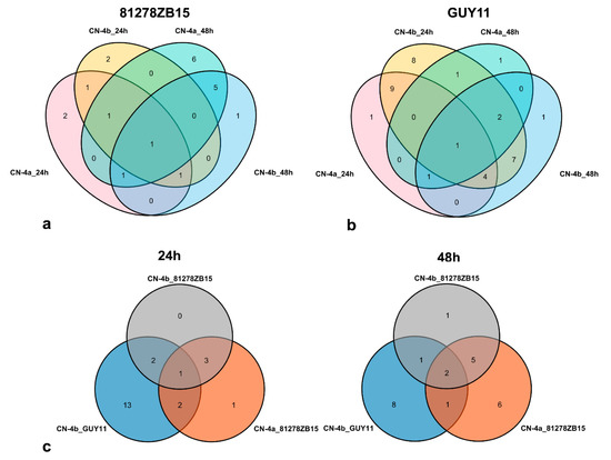 2.2. DEPs in Rice in Response to the Infection of Different Fungal Isolates