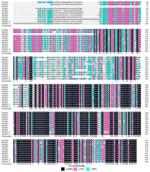 2.1. PbCOP1 Cloning and Homology Analysis