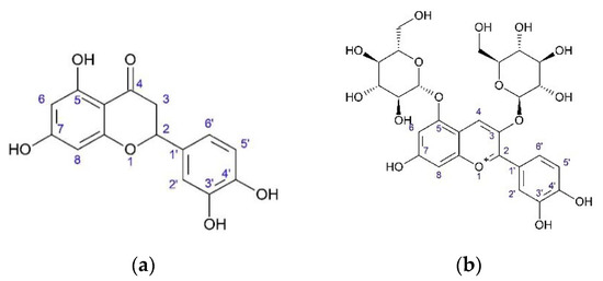 Flavanone and antocyanin from O. acanthium L.: (a) Eriodictyol; (b) Cyanin.