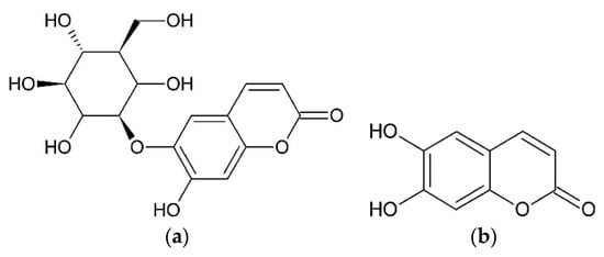 Coumarins from O. acanthium L.: (a) Aesculin; (b) Aesculetin.