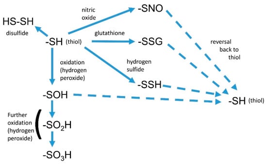 - Hancock, J.T.; Craig, T.; Whiteman, M. Competition of reactive signals and thiol modifications of proteins. J. Cell Signal. 2017, 2, 170. [Google Scholar] [CrossRef]