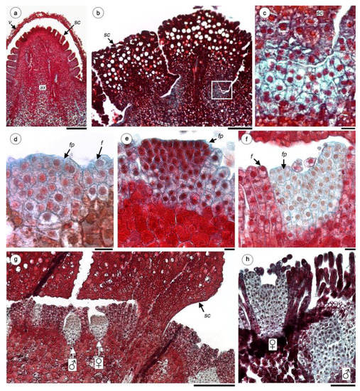 2.3. Inflorescence and Female Flower Ontogeny