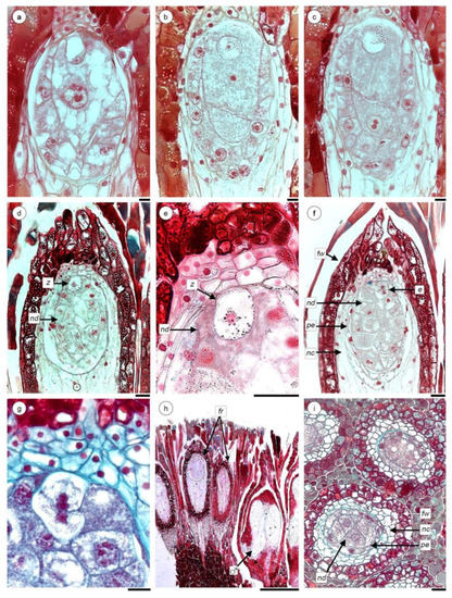 - Davis, G.L. Systematic Embryology of the Angiosperms; Wiley: New York, NY, USA, 1966. [Google Scholar]