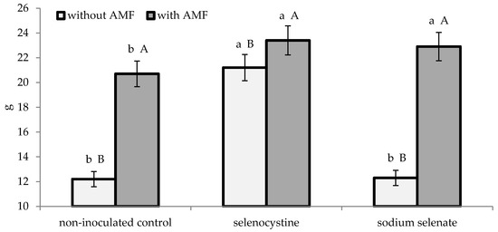 - Duran, P.; Acuca, J.J.; Jorquera, M.A.; Azcyn, R.; Borie, F.; Cornejo, P.; Mora, M.L. Enhanced selenium content in wheat grain by coinoculation of selenobacteria and arbuscular mycorrhizal fungi: A preliminary study as a potential Se biofortification strategy. J. Cereal Sci. 2013, 57, 275–280. [Google Scholar] [CrossRef]