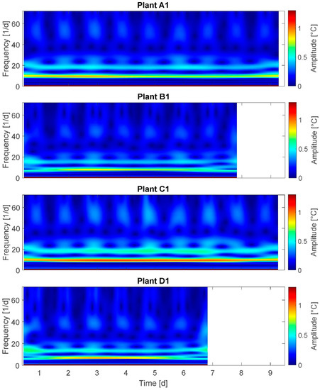 The results of the STFT are presented for plants A1, B1, C1, and D1 (Figure 6).