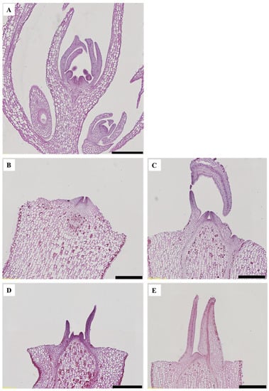 Zaccai and Edri [] distinguished three stages of Eustoma grandiflorum (Raf.) Shinn. ‘Heidi Deep Blue’ flower bud development, and Islam et al. [] distinguished seven stages of flower development in Eustoma grandiflorum (Raf.) Shinn. ‘Fuji Deep Blue’. However, the stages of flower bud differentiation in kalanchoe are not yet well known. Further research is needed to fully understand the flower bud differentiation process of kalanchoe.