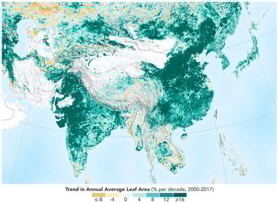 Trend in annual average leaf area from satellite. Image reproduced and modified after www.nasa.gov/sites/default/files/styles/full_width/public/thumbnails/image/asia_tamo_2017_full.png?itok=pSrXnDKA.