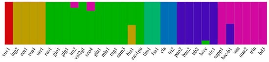 - Janni, M.; Cadonici, S.; Bonas, U.; Grasso, A.; Dahab, A.A.; Visioli, G.; Pignone, D.; Ceriotti, A.; Marmiroli, N. Gene-ecology of durum wheat HMW glutenin reflects their diffusion from the center of origin. Sci. Rep. 2018, 8, 16929. [Google Scholar] [CrossRef]