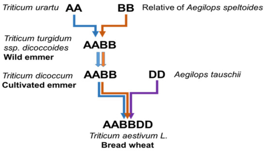 A series of hybridisation events between Triticum and Aegilops species (Figure 1) led to the creation of hexaploid bread wheat c. 8000 years ago [2]. With the genomes of wheat and its closest wild relatives now sequenced, there is great potential for wheat improvement [1,27,28,29] as the diversity found within wheat’s wild relatives is recognised as a valuable source of biotic and abiotic tolerance [30,31].