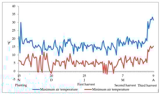 Trend of air temperature inside the greenhouse in Portici (Naples, southern Italy) as an average of 2016–2017 and 2017–2018.