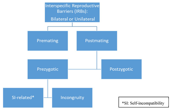 - Lee, C.B.; Page, L.E.; McClure, B.A.; Holtsford, T.P. Postpollination hybridization barriers in Nicotiana Section Alatae. Sex. Plant Reprod. 2008, 21, 183–195. [Google Scholar] [CrossRef]