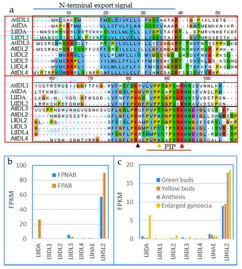 - Ying, P.; Li, C.; Liu, X.; Xia, R.; Zhao, M.; Li, J. Identification and molecular characterization of an IDA-like gene from litchi, LcIDL1, whose ectopic expression promotes floral organ abscission in Arabidopsis. Sci. Rep. 2016, 6, 37135. [Google Scholar] [CrossRef] [PubMed]