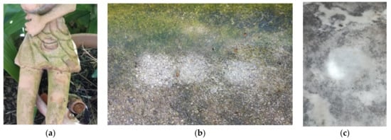 - Devreux, G.; Santamaria, U.; Morresi, F.; Rodolfo, A.; Barbabietola, N.; Fratini, F.; Rita Reale, R. Fitoconservazione. Trattamenti alternativi sulle opere in materiale lapideo nei Giardini Vaticani. In Proceedings of the 13th Congresso Nazionale IGIIC -Lo Stato dell’Arte, Turin, Italy, 22–24 October 2015; pp. 199–206. (In Italian). [Google Scholar]
