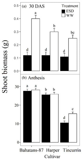 4.4. Early Season Drought Reduced the Root: Shoot Ratio at Anthesis