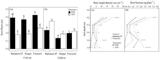 - Siddique, K.H.M.; Belford, R.K.; Tennant, D. Root: Shoot ratios of old and modern, tall and semi-dwarf wheats in a Mediterranean environment. Plant Soil 1990, 121, 89–98. [Google Scholar] [CrossRef]