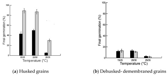 2.2. Effect of Husk, Light and Temperature on Final Germination