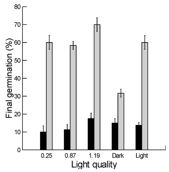 - Casal, J.J.; Sánchez, R.A. Phytochromes and seed germination. Seed Sci. Res. 1998, 8, 317–329. [Google Scholar] [CrossRef]